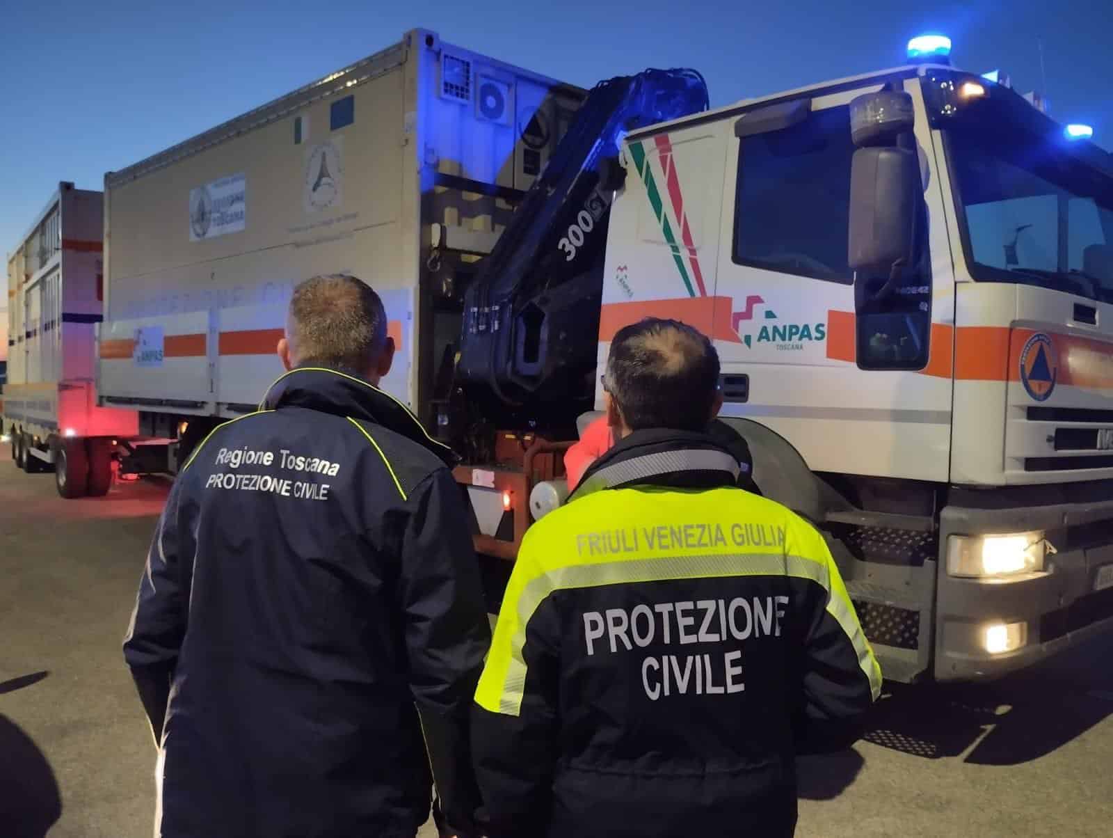 Il container è stato predisposto dalla Protezione civile della Regione Toscana attivando la colonna mobile regionale e, nello specifico i volontari di Anpas Toscana. La cucina da campo permetterà di preparare 250 pasti, mentre l’impianto per l’acqua rende potabili 1500 litri al minuto. Queste specifiche attrezzature saranno caricate su una nave in partenza dal porto di Trieste e arriveranno, nei prossimi giorni, in Turchia dove serviranno per aiutare le popolazioni fortemente colpite dal sisma dello scorso 6 febbraio.
