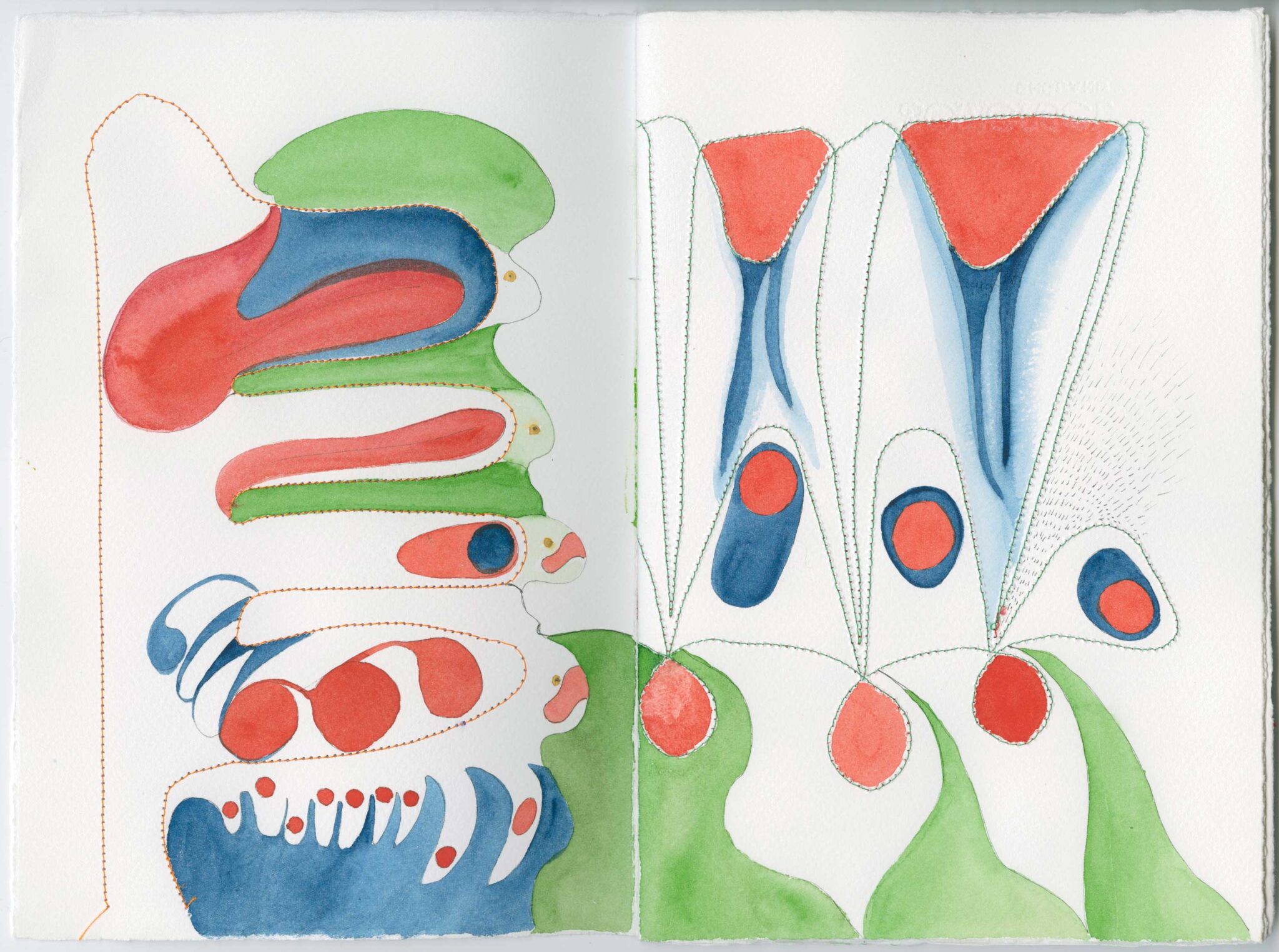 In My Thorny Rose Brush ha adoperato ramoscelli di rose selvatiche, molto spinosi con cui ha accarezzato le pagine, come fossero pennelli intinti in inchiostro nero e rosa. In Maybe I was a bottle, racconta invece la magica trasformazione nel tempo, attraverso l’impatto dell’acqua, di materiali scaricati nel mare.