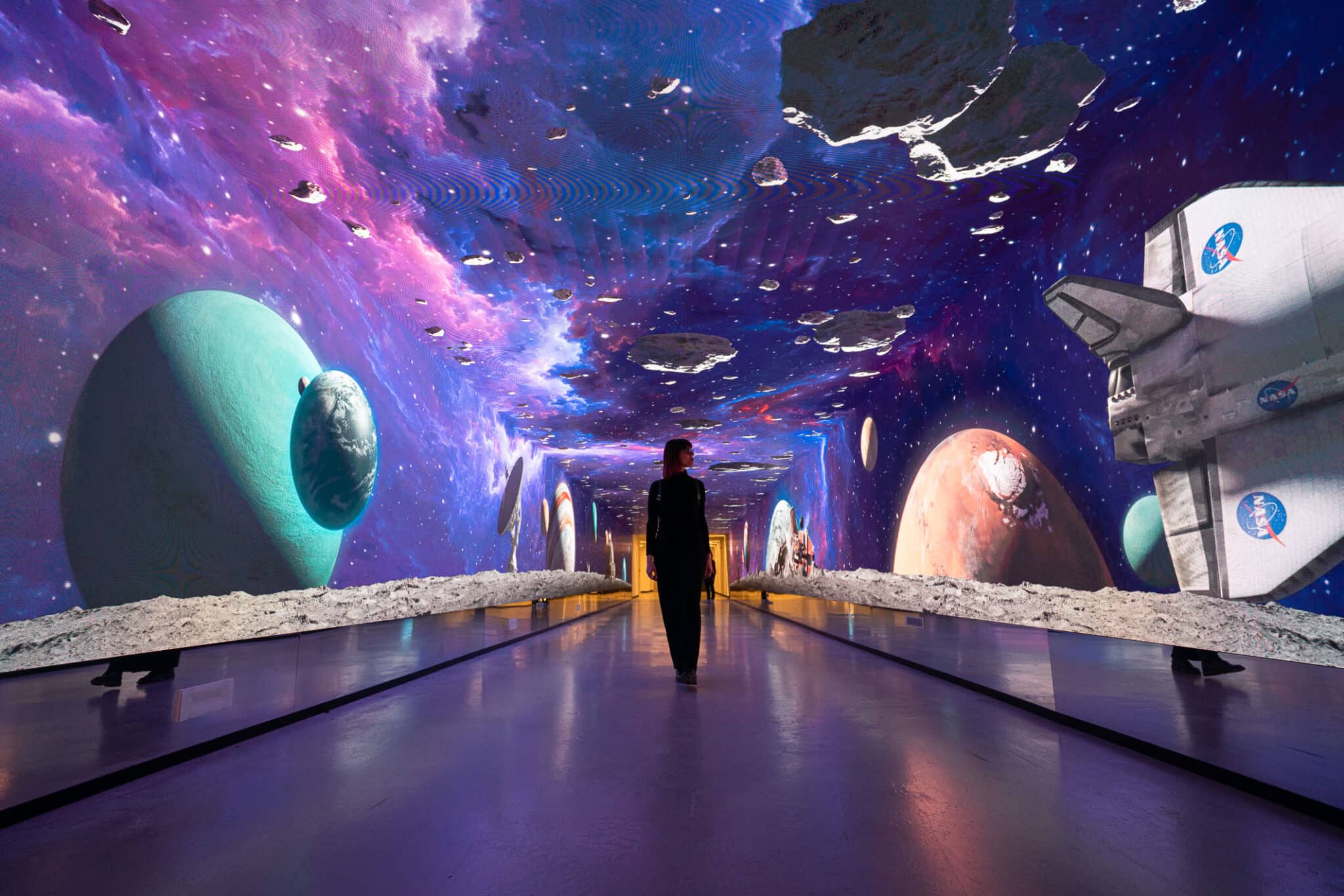 L’installazione di The Gallery, lunga 25 metri, è pensata per accogliere i passanti in maniera immersiva: gli audio video ledwall rivestono interamente le due pareti verticali e il soffitto della galleria, per un totale di 200 mq di schermi e quasi 30 milioni di pixel creando un’immersività totale. Grazie al brevetto di una società specializzata in sistemi di emissione sonora, l’impianto è inoltre dotato di audio invisibile: l’utilizzo di appositi dispositivi installati dietro al ledwall al posto delle tradizionali casse acustiche, permetterà di trasmettere il suono attraverso le vibrazioni, creando così una “bolla sonora”.