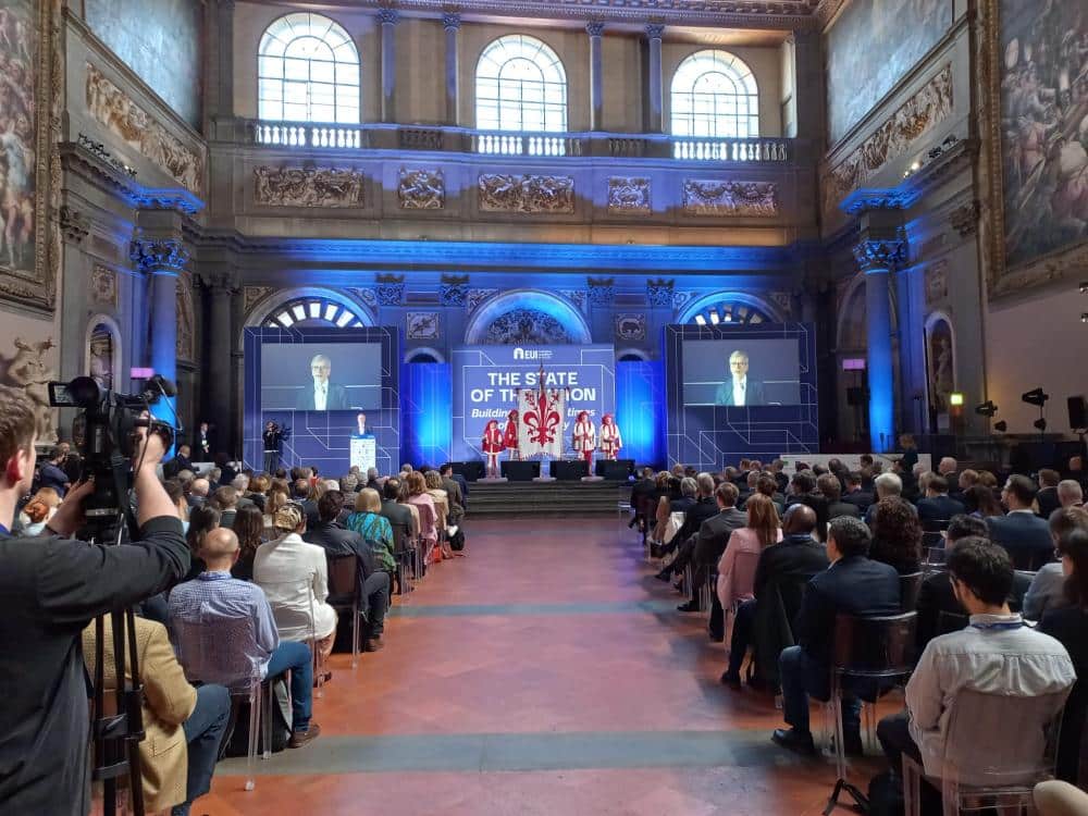 Nel Salone dei Cinquecento a Palazzo Vecchio a Firenze, la seconda giornata della conferenza The State of the Union si è aperta con l’intervento del presidente Eugenio Giani tra i saluti iniziali, poco prima dell’intervento dell’Alto rappresentante Ue Josep Borrell.