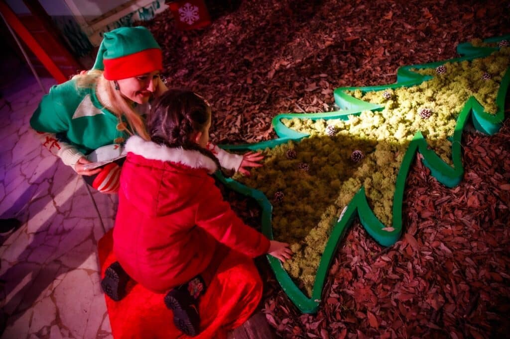 Una volta entrati nella Baita, ogni tappa è un piccolo sogno che si avvera, dalla Foresta innevata al Bosco incantato, dalla Fabbrica dei giocattoli all’ufficio postale del Polo Nord.