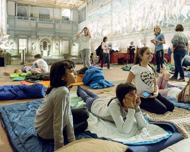 Centinaia di attività, laboratori, iniziative e spettacoli. Si parte con l’evento di venerdì 12 alle 18 nel Salone dei Cinquecento, con “Leonardo e le macchine sonore”, uno spettacolo partecipato per stupirsi e scoprire come sono nati gli strumenti musicali, a cura del Conservatorio L. Cherubini; sabato 13 aprile alle 18.30, di nuovo tutti a raccolta a Palazzo Vecchio per “Una sera con Leonardo. Domande e ricordi di quando ero bambino” tratto dallo spettacolo Essere Leonardo da Vinci, un’intervista impossibile di Massimiliano Finazzer Flory; e si conclude domenica 14 con la lezione del coro più grande che c’è con “Non è mai troppo tardi per cantare” a cura di Venti Lucenti alle ore 17 in Palazzo Vecchio Attesissima, ormai, la notte al museo: “Sogni d’oro tra soffitti d’oro” torna a grande richiesta, una possibilità unica per bambini e genitori di passare una notte indimenticabile in sacco a pelo, niente meno che nel Salone dei Cinquecento. Sabato 13 alle 21 appuntamento per un percorso speciale nel museo, per poi chiudere gli occhi in compagnia dei grandi personaggi della famiglia Medici. Al risveglio, infine, colazione per tutti grazie a Fondaco Italia e Rigoni. Posti limitati, prenotazione obbligatoria.