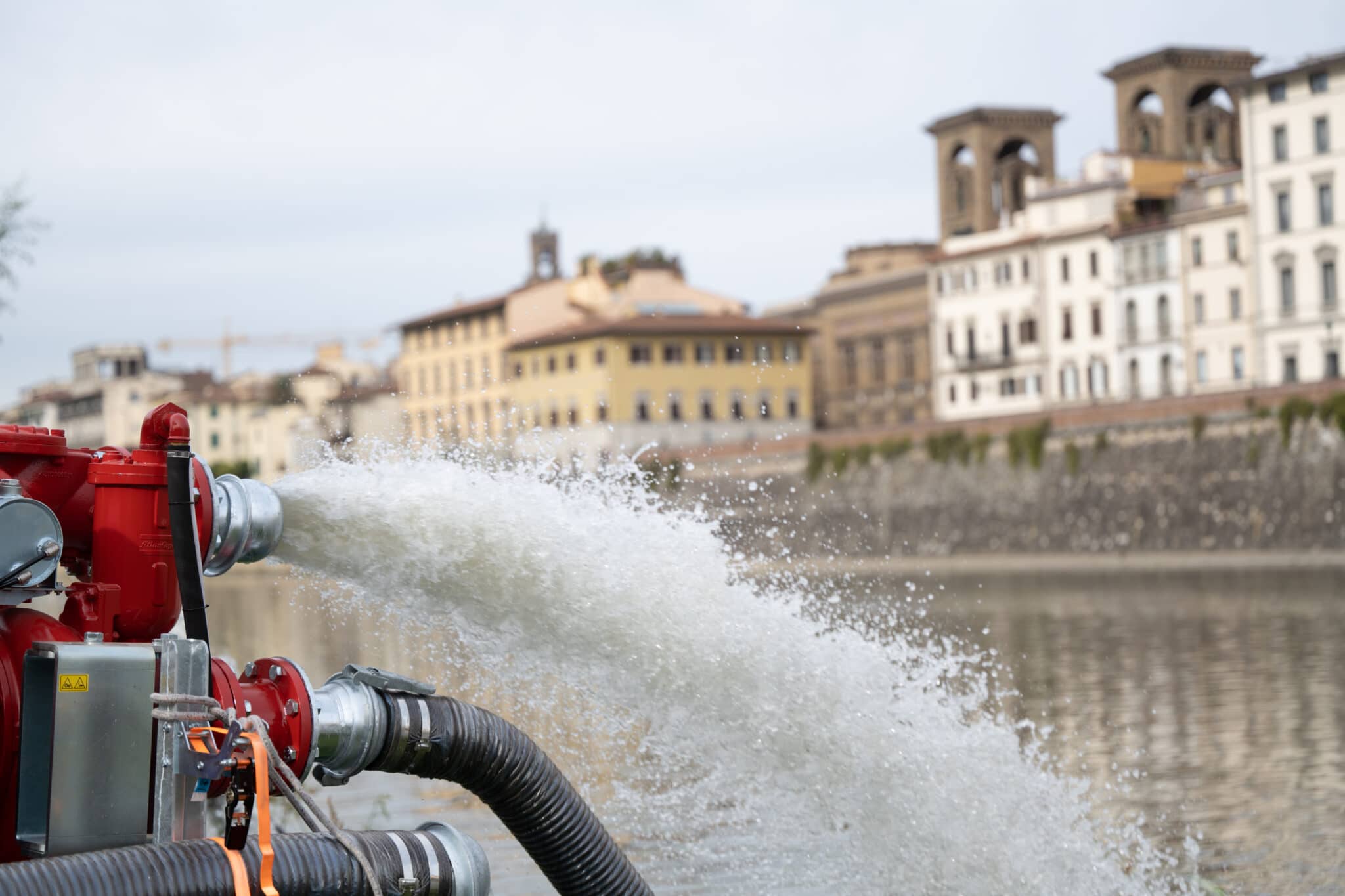 Alcuni dei macchinari presenti stamani, come ha spiegato il presidente del Consorzio di bonifica 3 Medio Valdarno Marco Bottino, “sono stati utilizzati durante l’alluvione di Livorno del 2019. Si tratta di idrovore potenti che servono per svuotare in tempi rapidi i luoghi allagati”