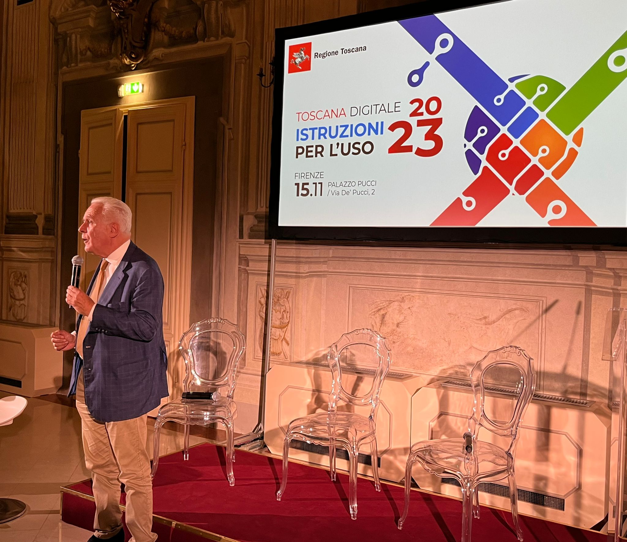 Il presidente Eugenio Giani all’evento “Toscana digitale”