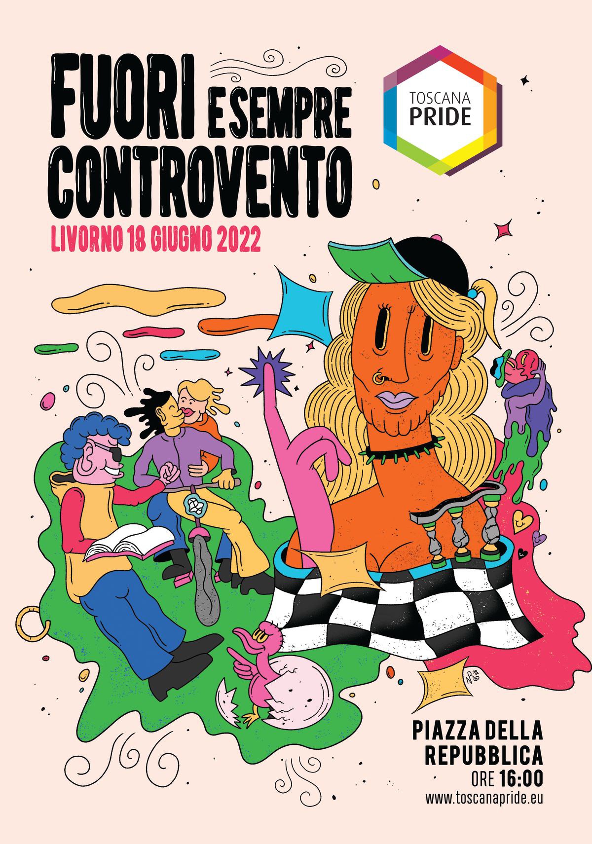 A 50 anni dalla “Stonewall italiana”, la prima manifestazione italiana in difesa dei diritti e della dignità delle persone omosessuali organizzata dal F.U.O.R.I (Fronte Unitario Omosessuale Rivoluzionario Italiano) per protestare contro le violente tesi e terapie riparative promosse dal Congresso Italiano di Sessuologia (CIS) che si teneva a Sanremo il 5 aprile del 1972, e dopo due anni di stop forzato a causa della pandemia, la comunità LGBTQIA+* toscana e non solo, torna nelle strade e nelle piazze con lo slogan Fuori e sempre controvento”, per far sentire il proprio grido di ribellione e lotta.