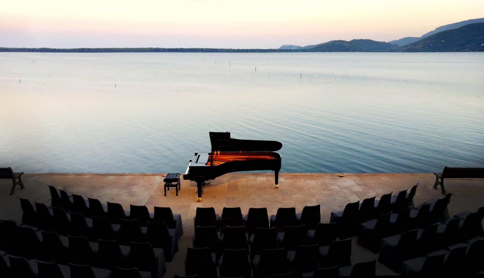 Il pianoforte arriva così nei luoghi più insoliti come la scogliera a picco sul mare di Talamone, le piazze di Orbetello e ancora la Terrazza Guzman che si spalanca sulla laguna di Orbetello, oppure fra le mura possenti dei Forti del territorio e perfino nel cuore del Bosco di Patanella dove si attende l’alba a tempo di musica.