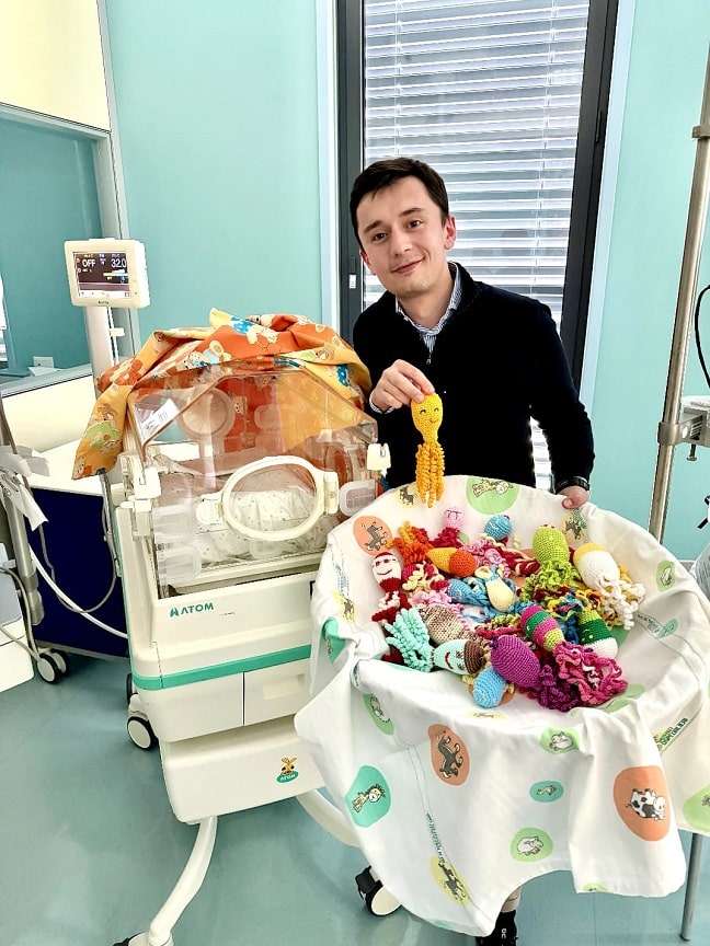 In medicina è noto l’effetto calmante che i piccoli peluche, in particolare i piccoli polpi in maglia, hanno sui bimbi prematuri. Una tecnica nata in Danimarca nel 2013 e che si è diffusa ovunque. Una pratica usata anche in Toscana, così circa 30 “polpetti” colorati realizzati all’uncinetto in fibra di cotone sono stati donati all’Ospedale San Jacopo di Pistoia per essere di supporto nell’assistenza neonatale. La consegna questa mattina al personale sanitario di Neonatologia insieme al sottosegretario alla Presidenza della Regione Bernard Dika, Antonio Rancati, presidente di Octopolis Foundation che ha promosso l’iniziativa e Andrea Landi presidente del circolo ARCI di Borgonuovo-Prato, presso il quale sono stati realizzati delle volontarie i piccoli polpi.