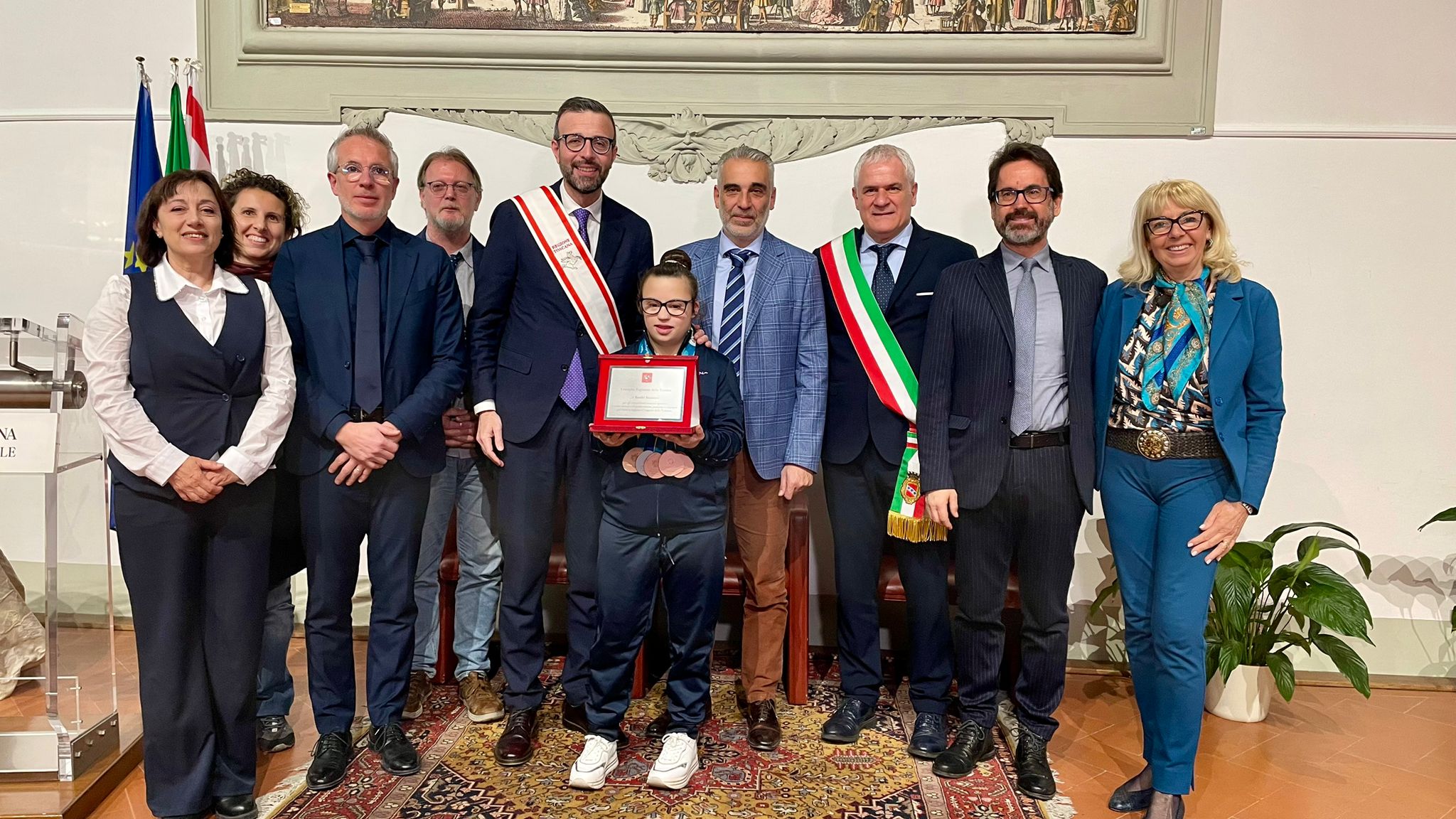 La Toscana premia la sua campionessa con una targa speciale, durante una cerimonia nella sala Gonfalone del Consiglio regionale alla presenza del presidente del Consiglio regionale Antonio Mazzeo. Hanno partecipato anche il sindaco di Camaiore Marcello Pierucci, il vicepresidente del Consiglio regionale Stefano Scaramelli, i consiglieri regionali Diego Petrucci e Cristiano Benucci, il consigliere regionale Mario Puppa che ha proposto l’iniziativa all’Ufficio di Presidenza, l’allenatrice dell’atleta Galia Omerska e la presidente dell’associazione sportiva Filo conduttore Lucia Frediani.