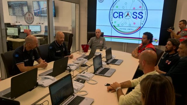 La centrale Cross, diretta da Piero Paolini, è una struttura che opera per conto del Dipartimento Nazionale di Protezione Civile con l’obiettivo di coordinare i soccorsi sanitari in supporto alle Regioni colpite da una grande emergenza.