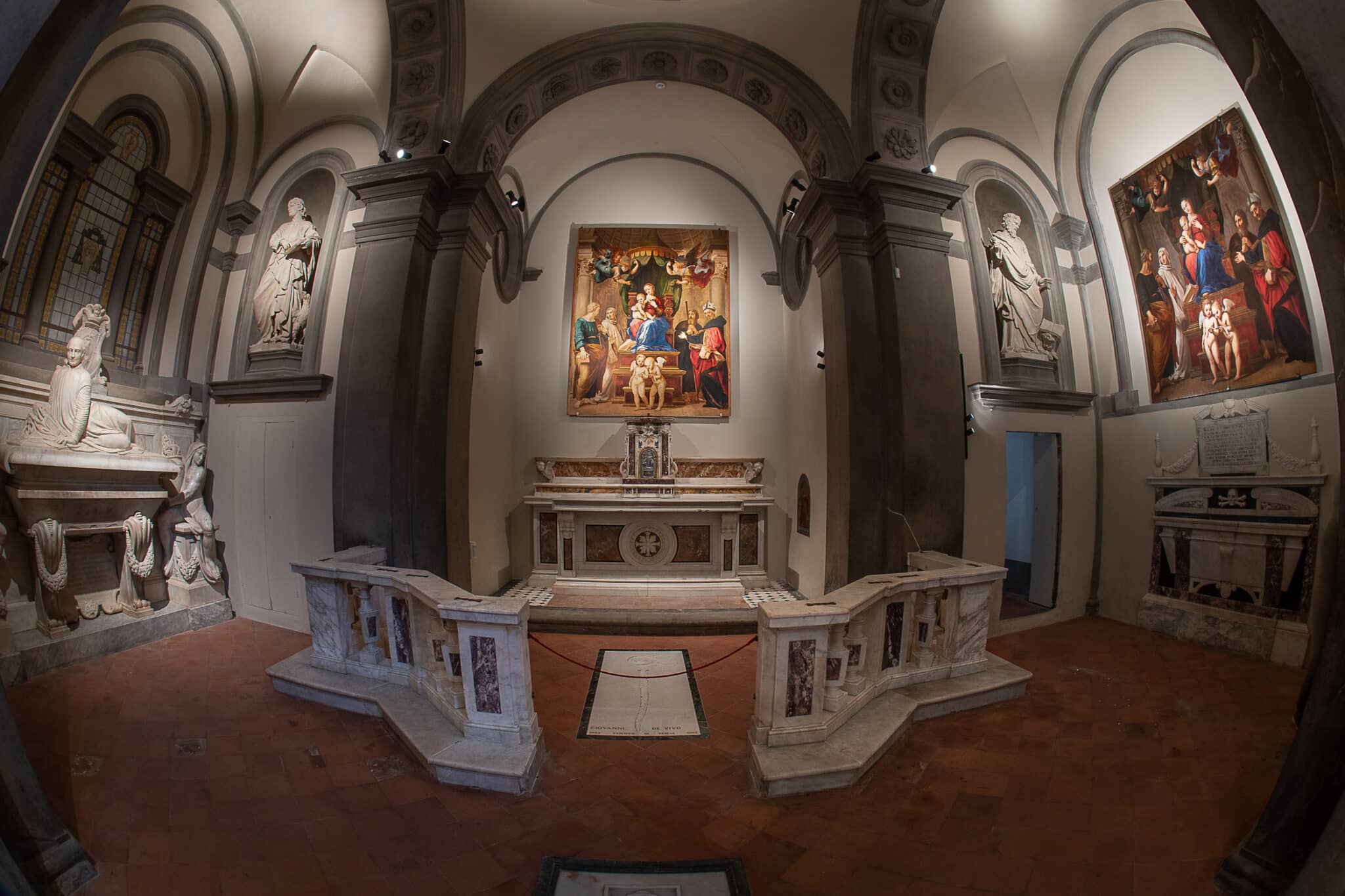 Nel Duomo di Pescia fu collocata la copia dipinta da Pier Dandini: anche questo dipinto è stato nei mesi scorsi sottoposto a controllo e restauro, in preparazione alla mostra che lo vede ora a confronto con l’originale di Raffaello.