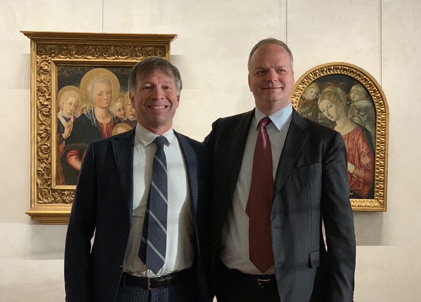 L’incontro è stato anche occasione per riparlare dei due dipinti di Albrecht Altdorfer con Storie di San Floriano, dalla collezione Spannocchi di Siena, dal 1913 in deposito agli Uffizi. Già dal 2018 essi sono esposti a Santa Maria della Scala. Nell’incontro di questa mattina, Schmidt ha ribadito che le due opere, di proprietà della Provincia di Siena, ritorneranno a far parte della grande impresa di ricomposizione della storica collezione senese, su impulso del dottor Alessandro Bagnoli della Soprintendenza senese, e di concerto con il Soprintendente Andrea Muzzi e del direttore del Polo Museale Toscano Stefano Casciu. Con questa restituzione gli Uffizi contribuiscono a un’operazione non solo virtuosa, ma di spettacolare valore storico: la collezione Spannocchi può tornare a rivivere nella città cui appartenne fin dal 1709. Gli Uffizi, inoltre, invieranno a Siena anche opere del Sodoma in occasione della prossima mostra, che vedrà protagonista anche l’affresco della Cappella di piazza del Campo, attualmente in restauro, Madonna con Bambino e santi.
