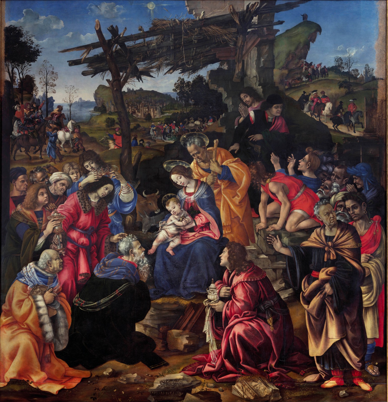 Protagoniste della mostra sono riproduzioni e dettagli ad alta definizione di dipinti e disegni realizzati tra Cinque e Seicento, raffiguranti personaggi black: come, appunto, il disegno di Mantegna Giuditta e l’ancella con la testa di Oloferne, quello con cui Dürer tratteggia la giovane domestica Katerina, la tela David e Betsabea di Artemisia Gentileschi, ma anche il capolavoro appena ritrovato ed acquistato dagli Uffizi del pittore Bolognese Bartolomeo Passerotti, L’enigma di Omero, l’Adorazione dei Magi di Filippino Lippi, la Caccia del Persiano di Filippo Napoletano, l’Allegoria dell’America di Baldassarre Franceschini, l’insolito e colorato Moro di Barbaria di Jacopo Ligozzi.
