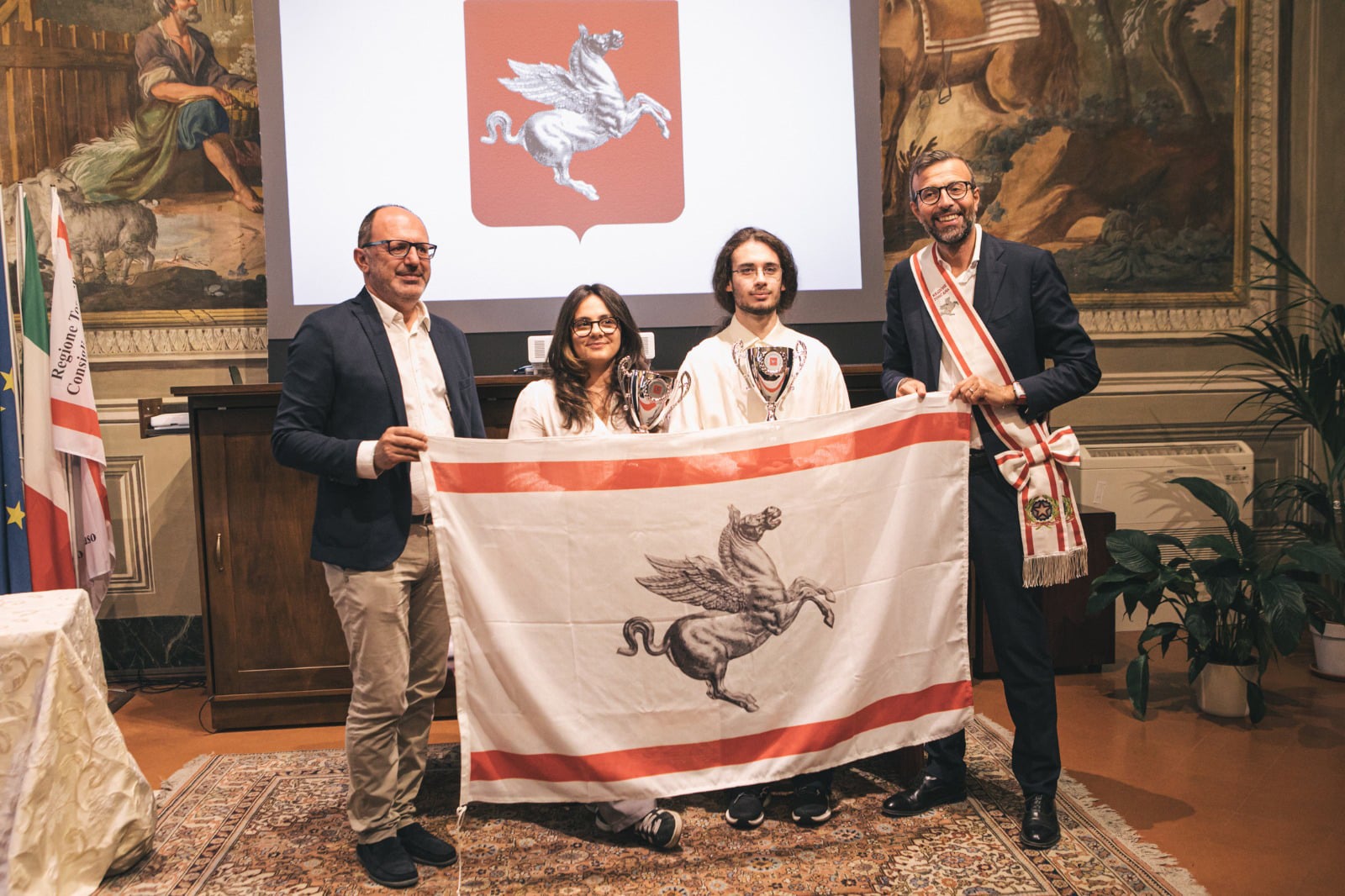 Alla cerimonia di premiazione, che si è tenuta martedì 24 settembre nella sala degli Affreschi di palazzo del Pegaso, hanno preso parte il presidente del Consiglio regionale Antonio Mazzeo e il portavoce dell’opposizione Marco Landi. Hanno consegnato a ciascuno dei ragazzi una coppa e una bandiera della Toscana, “che è di buon auspicio, ha già portato fortuna a molti tra quelli ai quali abbiamo avuto l’onore di consegnare riconoscimenti”, ha assicurato il presidente Mazzeo. “Il mio augurio è che questo per voi sia un punto di partenza e che si possano aprire le porte più belle per i vostri sogni”.