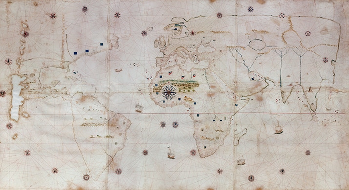 Proprio a Firenze sorsero le prime botteghe di “dipintori di carte” e la città divenne un centro di produzione cartografica. Nel corso di un secolo, poi, la vecchia geografia tolemaica, limitata ai soli tre continenti, fu poi completamente riscritta grazie alle nuove scoperte. Giovanni da Verrazzano, su incarico del re di Francia, Francesco I, concentrò le sue esplorazioni lungo la costa nord-orientale del continente americano, alla ricerca del passaggio verso l’estremo Oriente.