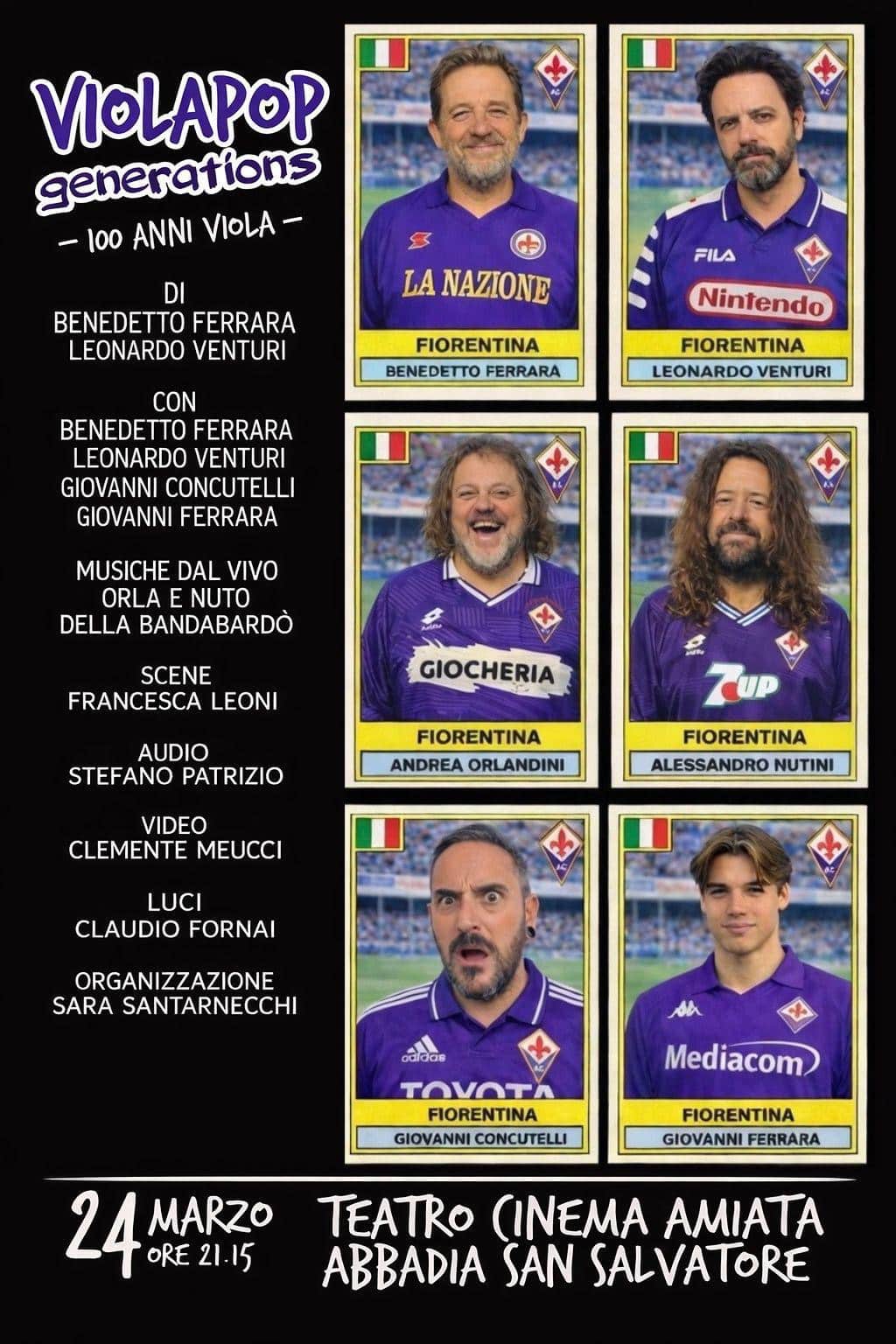 Martedì 24 marzo in occasione dei cento anni della Fiorentina andrà in scena al cinema Teatro Amiata di Abbadia San Salvatore “Violapop Generations” scritto da Benedetto Ferrara e Leonardo Venturi.