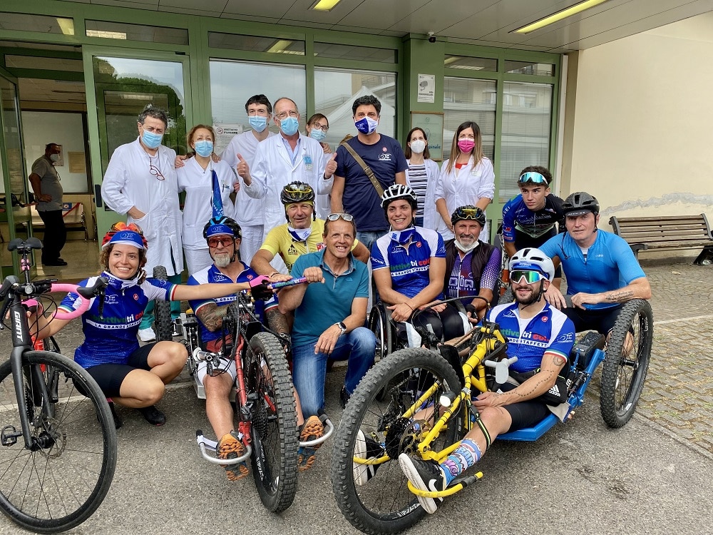 Ad accompagnare il gruppo, l’alpinista Simone Moro. La “carovana” è stata accolta oggi all’ingresso dell’Unità Spinale dell’Azienda Ospedaliero-Universitaria Careggi dal professor Giulio Del Popolo e parte della sua equipe, insieme ad Andrea Vannucci, consigliere regionale e vicesegretario della Commissione 3 Tutela della Salute, Politiche Sociali e Terzo Settore, Gioia Brogi, presidente del Gruppo Sportivo Unità Spinale Firenze Onlus, Piero Amati, coordinatore delle attività sportive Gruppo Sportivo Unità Spinale.